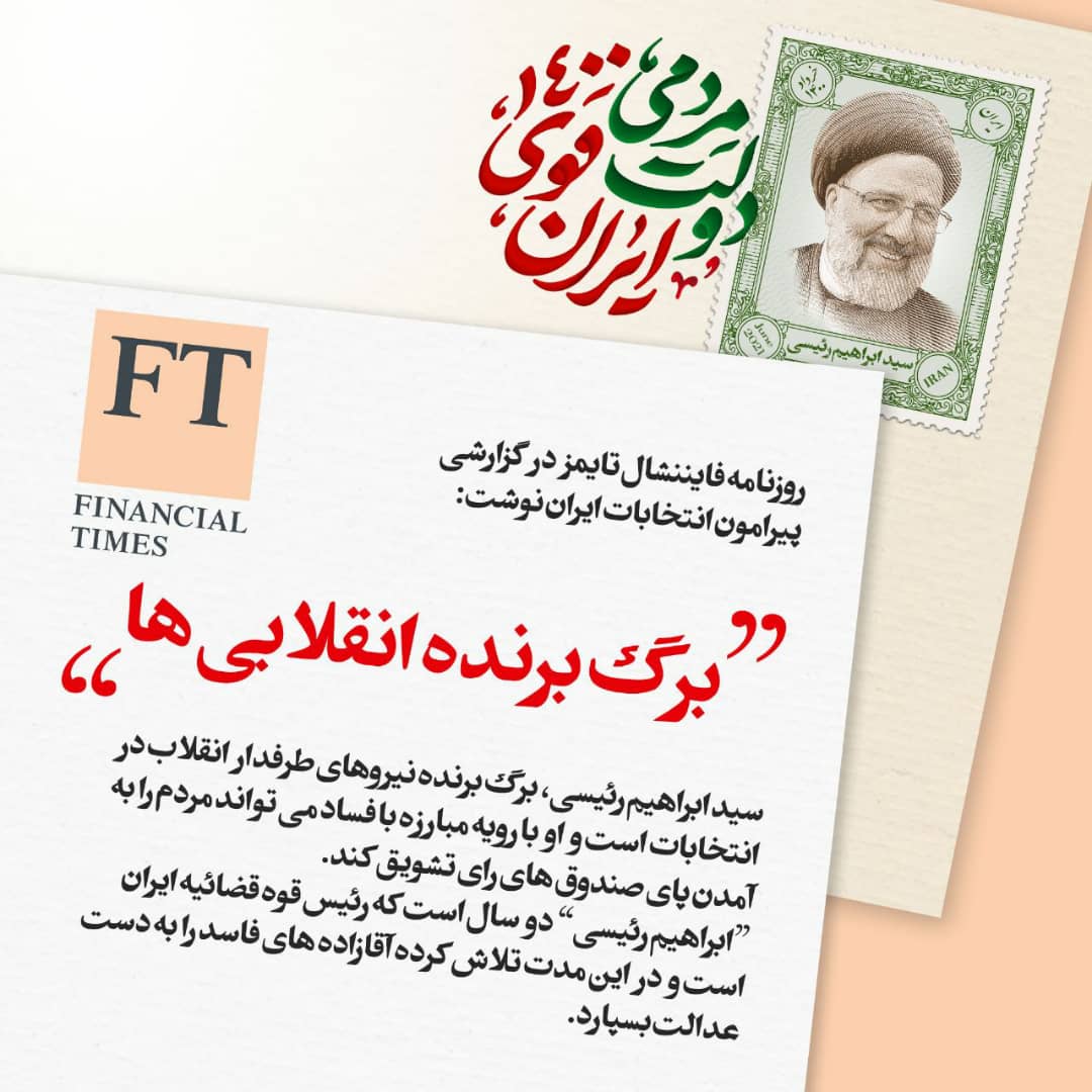 روزنامه فایننشیال تایمز در گزارشی پیرامون انتخابات ایران نوشت: ” سید ابراهیم رئیسی برگ برنده نیروهای طرفدار انقلاب در انتخابات است و او با رویه مبارزه با فساد می تواند مردم را به آمدن پای صندوق های رأی تشویق کند.”
