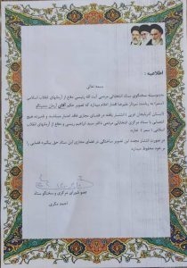 بدینوسیله سخنگوی ستاد انتخاباتی مردمی آیت الله رئیسی دفاع از آرمانهای انقلاب اسلامی (سمر) به ریاست سردار علیرضا افشار اعلام می دارد که تصویر حکم آقای آرمان سمیتگو (استان آذربایجان غربی) انتشار یافته در فضای مجازی فاقد اعتبار میباشد و نامبرده هیچ انتصابی با ستاد مرکزی انتخابی مردمی دکتر سید ابراهیم رئیسی و دفاع از آرمانهای انقلاب اسلامی (سمر ) ندارد.