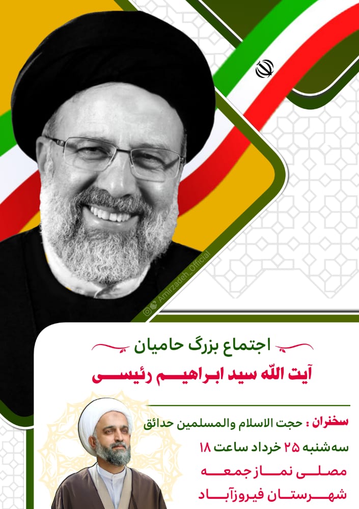 اطلاعیه اجتماع بزرگ حامیان آیت الله رئیسی شهرستان فیروزآباد استان فارس