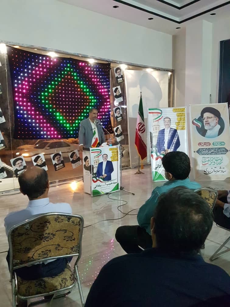 نشست حامیان دکتررئیسی باحضورجمعی ازاساتیدوفرهیختگان مازندران درخیابان 15 خرداد شهرستان ساری روزدوشنبه مورخ 24خرداد1400 برگزارشد.دراین نشست به تبیین برنامه ها واهداف حضوردکتررئیسی درانتخابات پرداخته شد وبابیان آثارحضورمردم درانتخابات وبالابودن سطح مشارکت مطالبی ارائه گردید.